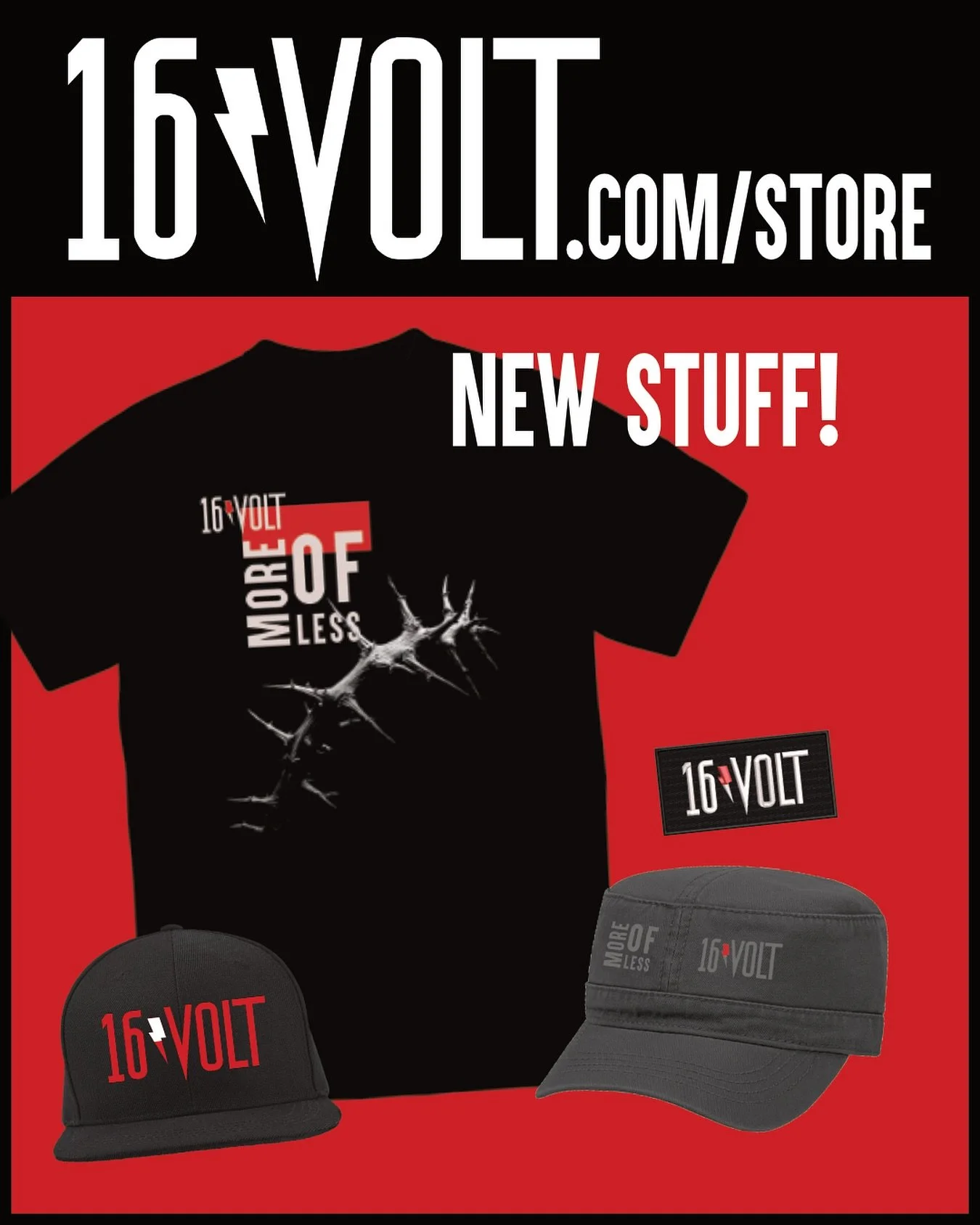 OTTO Superior Garment Washed Cotton Twill Military Cap in black with black embroidered “More Of Less” lockup and black and red 16VOLT logo. Adjustable one size fits all.